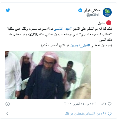 عفوي Twitterren شيخنا الشيخ فهد القاضي فرج الله عنه من هذه
