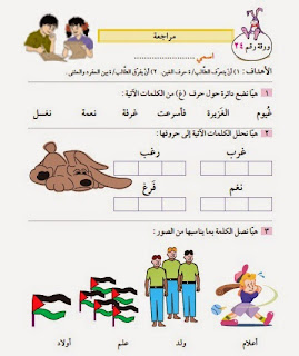 أوراق عمل مادة لغتي الصف الثالث الابتدائي فصل دراسي أول العام