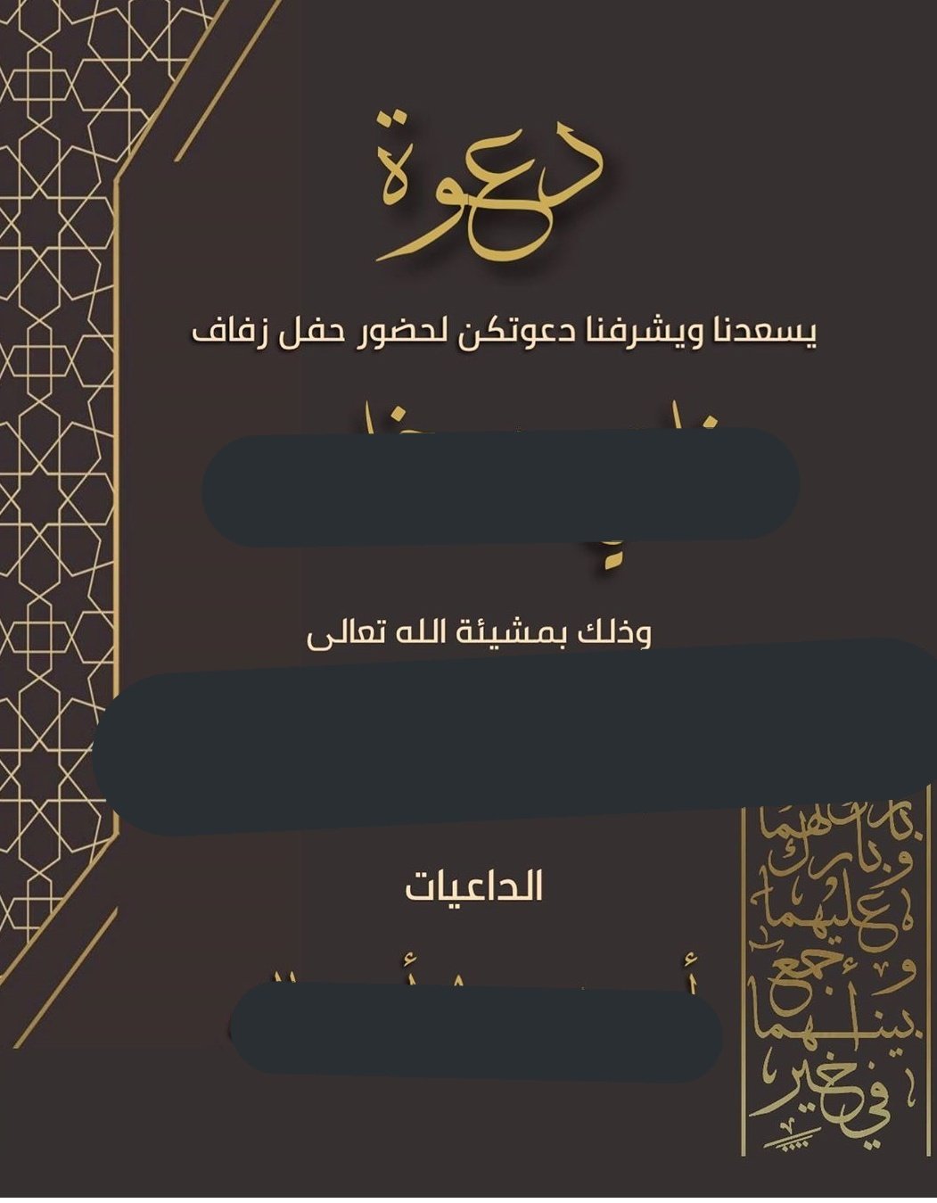 تصميم دعوة زواج الكترونيه للنشر في الواتس اب