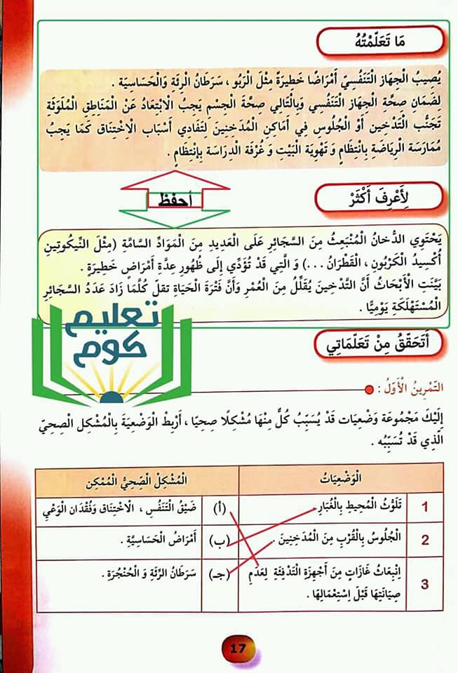 حلول تمارين الكتاب المدرسي مادة التربية العلمية السنة الرابعة