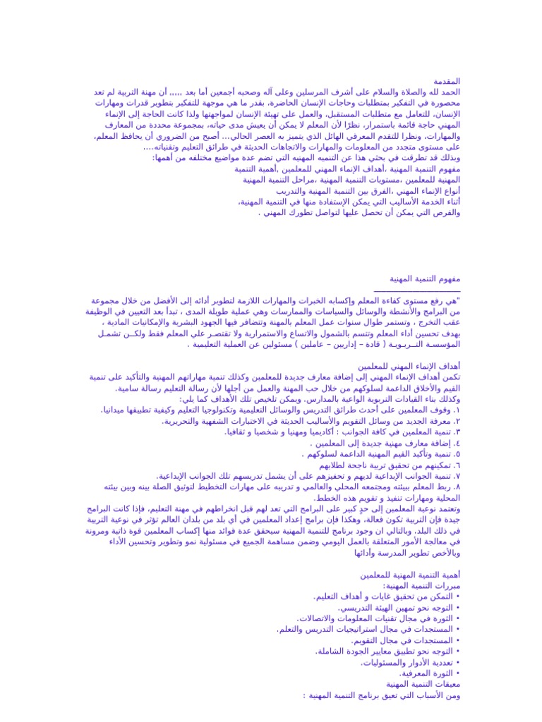 بحث بعنوان التنمية المهنيه