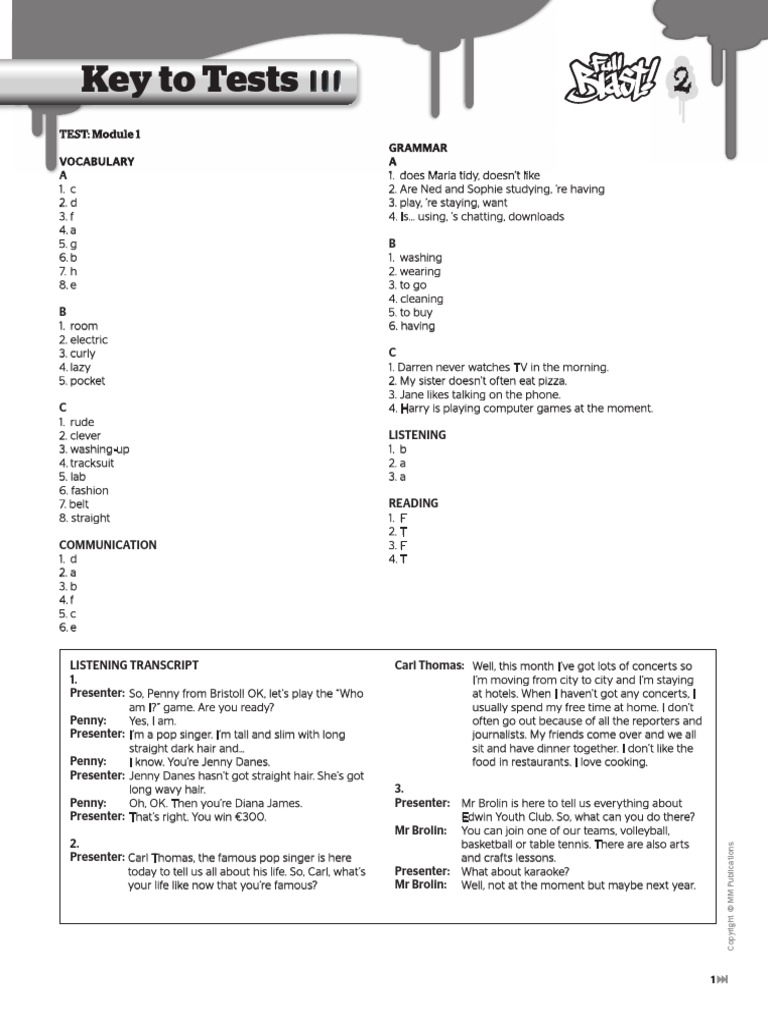 Full Blast 2 Grammar Tests Key Pdf Vse Dlya Studenta